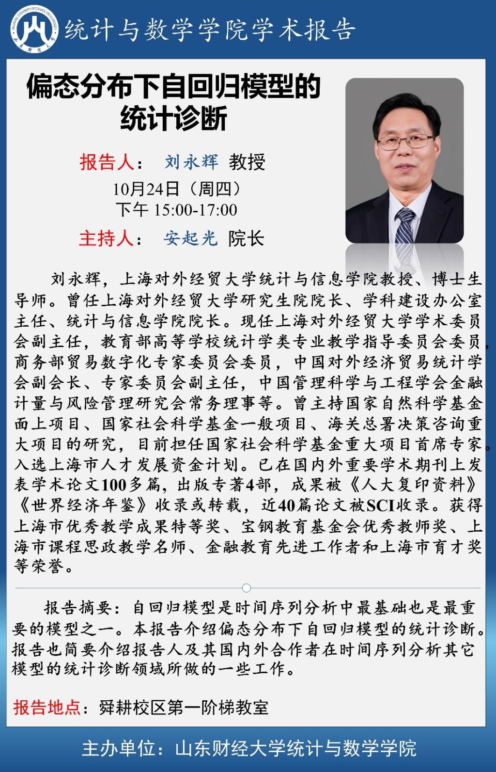 成人论坛 学术报告预告-偏态分布下自回归模型的统计诊断