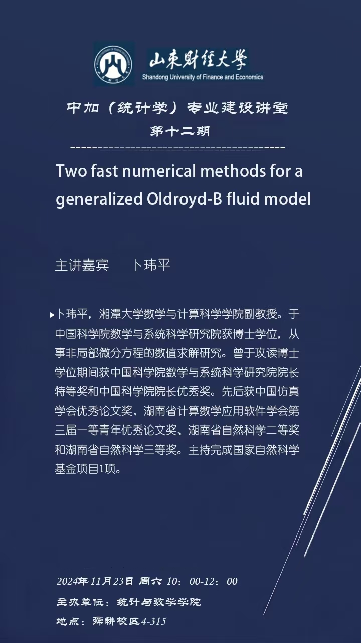 中加(统计学)专业建设讲堂第十二期——Two fast numerical methods for a generalized Oldroyd-B fluid model