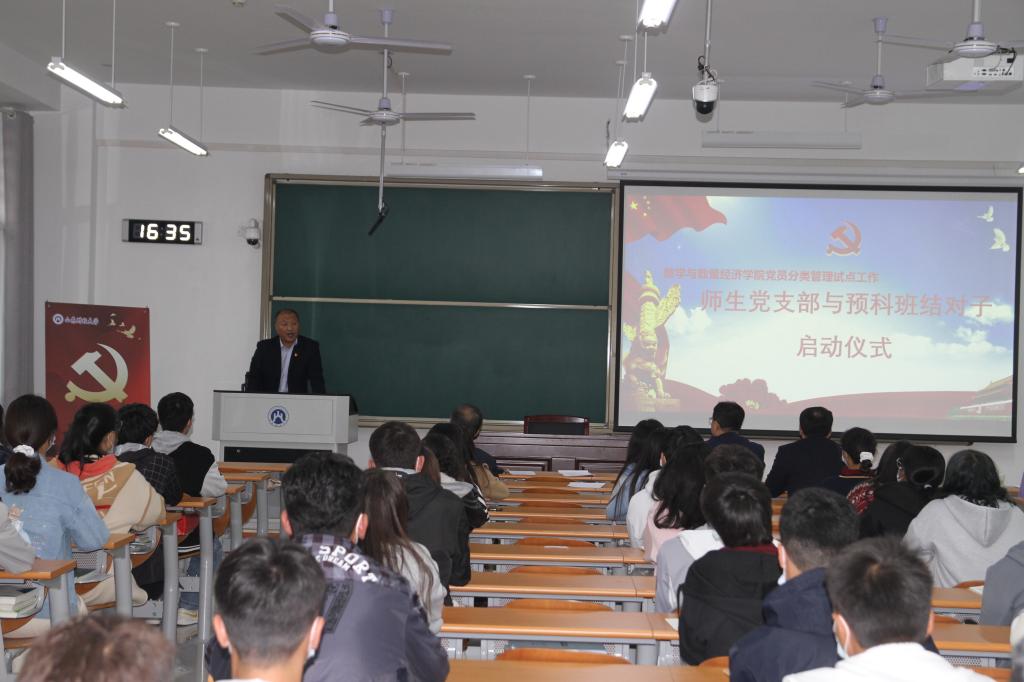 按照学院党委党员分类管理试点工作部署,为提升预科班教育服务工作质量,11月12日下午,成人论坛 在圣井校区6420教室举行师生党支部与预科班结对子启动仪式。院党委书记李振华,院长安起光,院党委副书记杨德嵋,院长助理、金融数学系支部书记郭洪峰,新疆内派老师肖玉宽,学院专职组织员张亚萌,预科班班主任阿娜尔参加启动仪式。