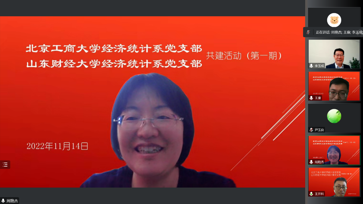 11月14日下午,成人论坛 经济统计系党支部与北京工商大学经济统计党支部围绕"党建引领下的经济统计学科建设与发展",在线上成功举办第一期共建活动。