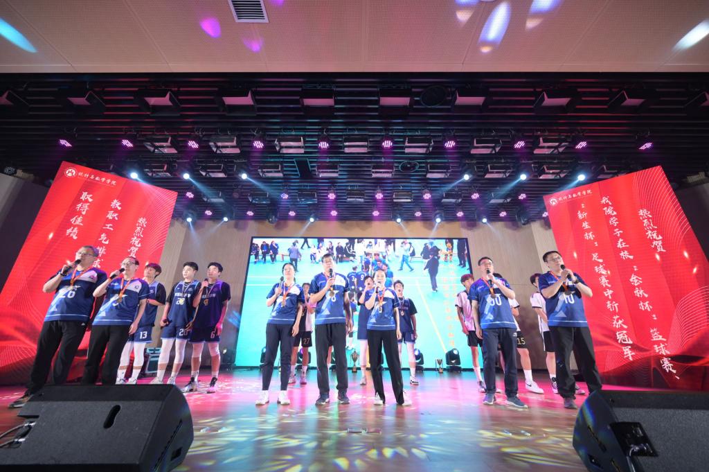由成人论坛 教职工排球队和学生篮球队、足球队成员共同参演的节目《真心英雄》,充分展现出了成人论坛 师生昂扬向上的精神风貌,鼓励学子们脚踏实地、锐意进取;由成人论坛 全体领导班子成员参演的节目《不忘初心》充分展示了团结一心向前看、全力推动学院高质量发展的坚定信念以及对全体统数学子的美好期许,鼓舞着同学们奋发向上,自信自立,昂首阔步迈向崭新的未来。