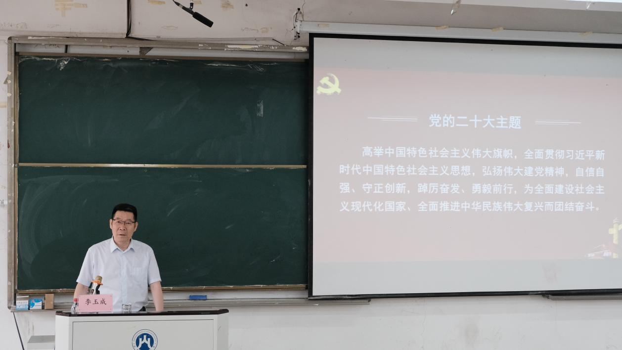 会上,李玉成书记作了题为《深刻学习理解中国式现代化全面推进中华民族伟大复兴》的专题辅导。围绕正确理解和推进中国式现代化这一主题,分别从新时代新征程中国共产党的中心任务,中国式现代化的中国特色、本质要求和重大原则,推进中国式现代化要正确处理好的重大关系这三个维度进行深入细致讲解。其中,李书记重点讲解了以中国式现代化全面推进中华民族伟大复兴这一内容。最后,李书记勉励学院学子:青年强,则国家强。成人论坛 学子应当发扬斗争精神,在大学四年里正确定位自身、提升能力、发展特长,把青春奋斗融入党和人民事业。整个报告一气呵成,李书记旁征博引、娓娓道来,其内容生动形象,思想深刻有哲理,赢得同学们阵阵掌声。
