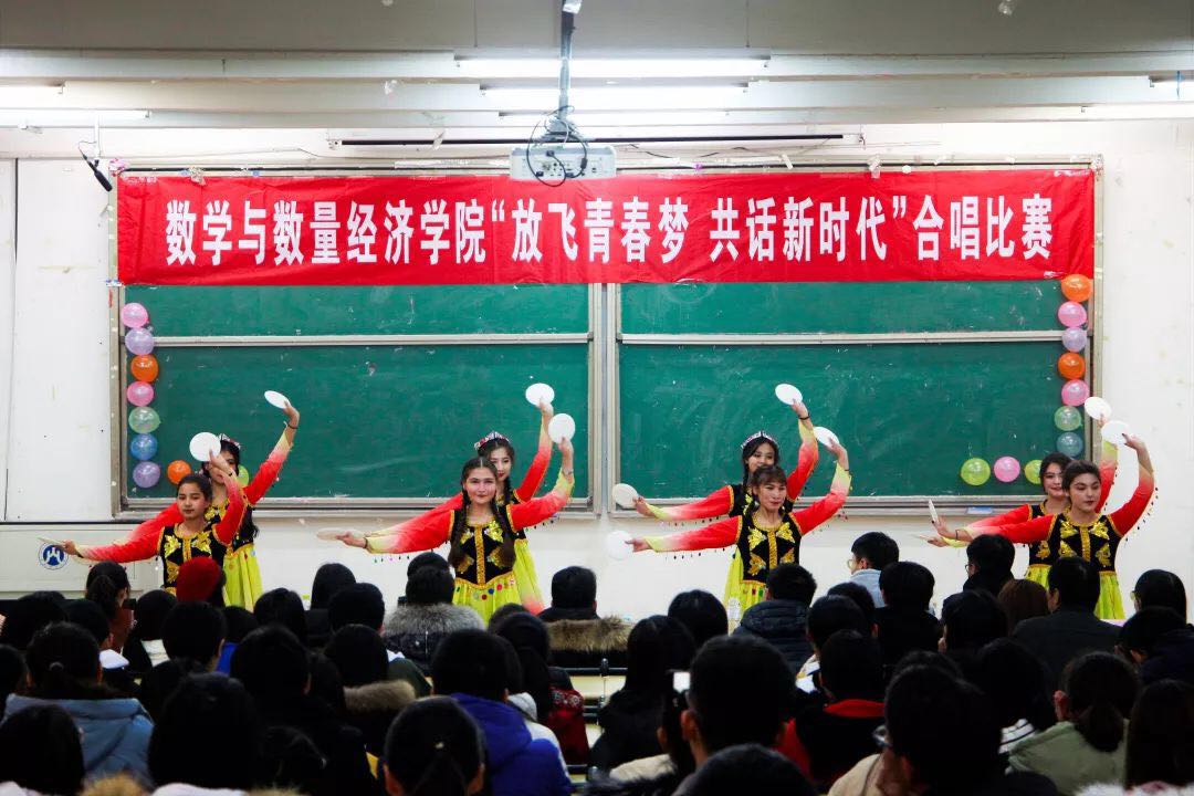 2018年11月24日晚,数学与数量经济学院“放飞青春梦共话新时代” 2018级合唱比赛于圣井校区敏行楼顺利举办。出席本次比赛的嘉宾和评委有:成人论坛 专职组织员张亚萌老师、预科班玛依努尔老师、肖玉宽老师、各学院代表及成人论坛 学生会各部门负责人。