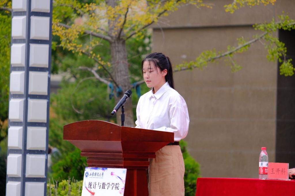在校生代表2020级数学与应用数学1班张萌萌和新生代表2022级大数据1班任婷婷分别发言,表示要树立远大理想,提升道德素养,学好专业知识,丰富大学生活。号召同学们以青春为笔构建梦想的蓝图,规划清晰的目标并付诸于行动,敢于挑战,在统数学院开启人生的崭新篇章。