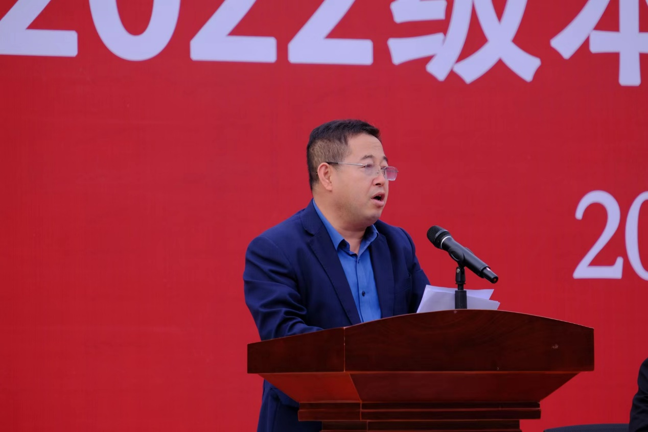 安起光代表学院致辞。他首先感谢辛勤培育同学们的家长和老师,并表示学院全体师生将握住接力棒成为2022级同学们新的家人,希望新同学的加入让学院更加充满生机与活力,勉励同学们要不忘初心使命,强化责任担当,弘扬新时代精神,点亮人生梦想,要有健康和强大的身心,以青春之我为党和国家事业奉献财大力量。