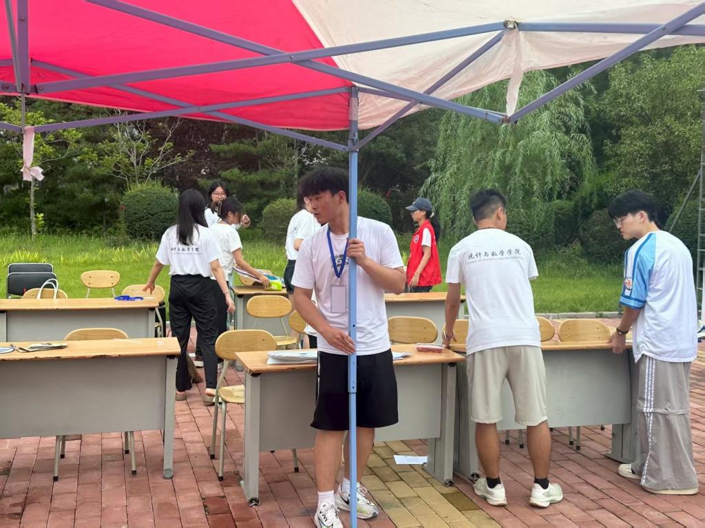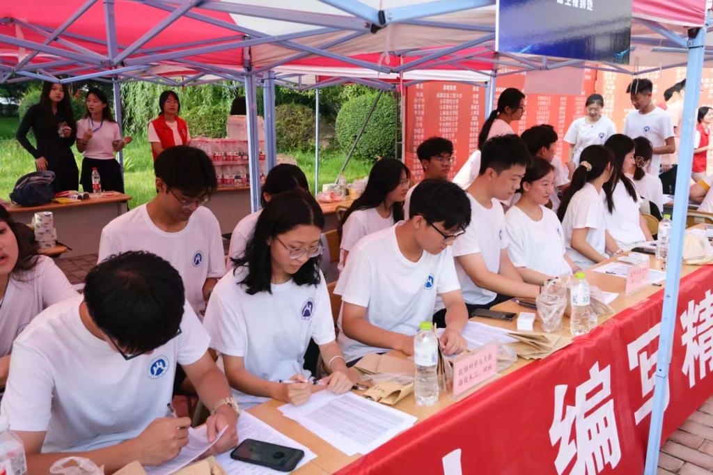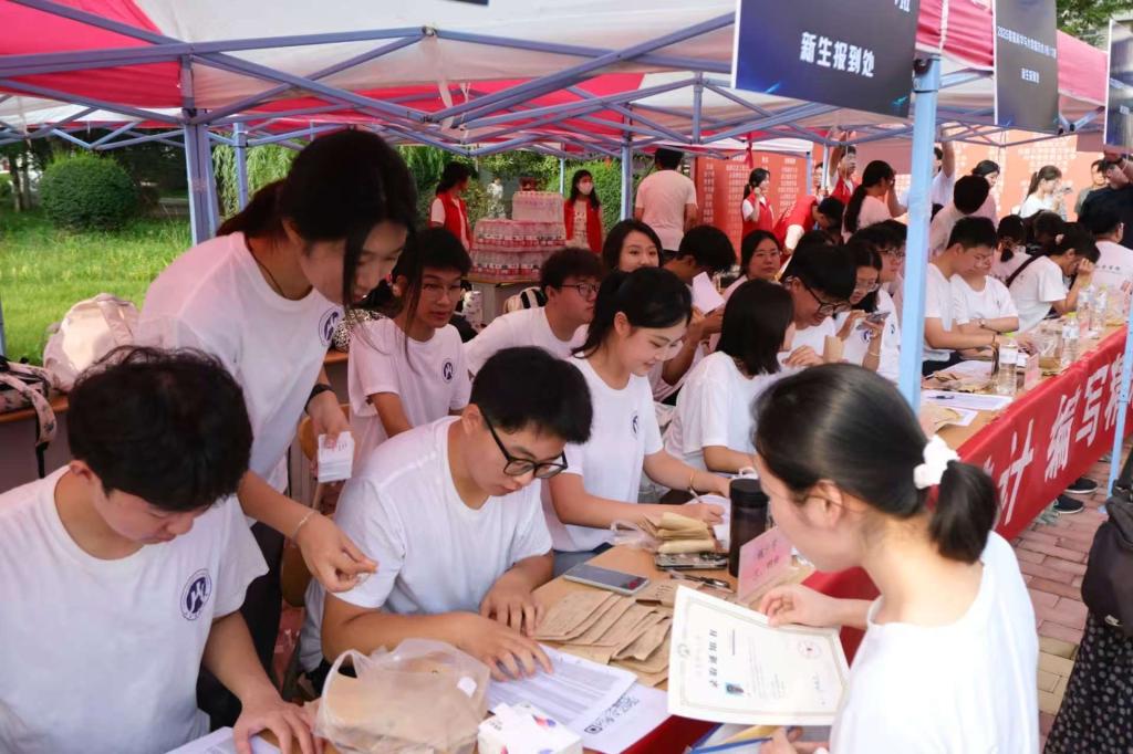 初秋清晨,志愿者身着统一服装上岗。接站组赴火车站引导新生乘校车,温暖“大学第一站”;两校区迎新点,志愿者架帐篷、摆桌椅、挂院旗,划分“注册登记区”“专业咨询区”“家长休息区”,确保动线清晰;氛围物料组制作手持牌、易拉宝,粘贴标语与气球,营造温馨氛围;志愿服务组持路线图指引报到、帮搬行李,提供“点对点”服务;资格审查组核对信息、协助领校园卡,高效完成报到流程。