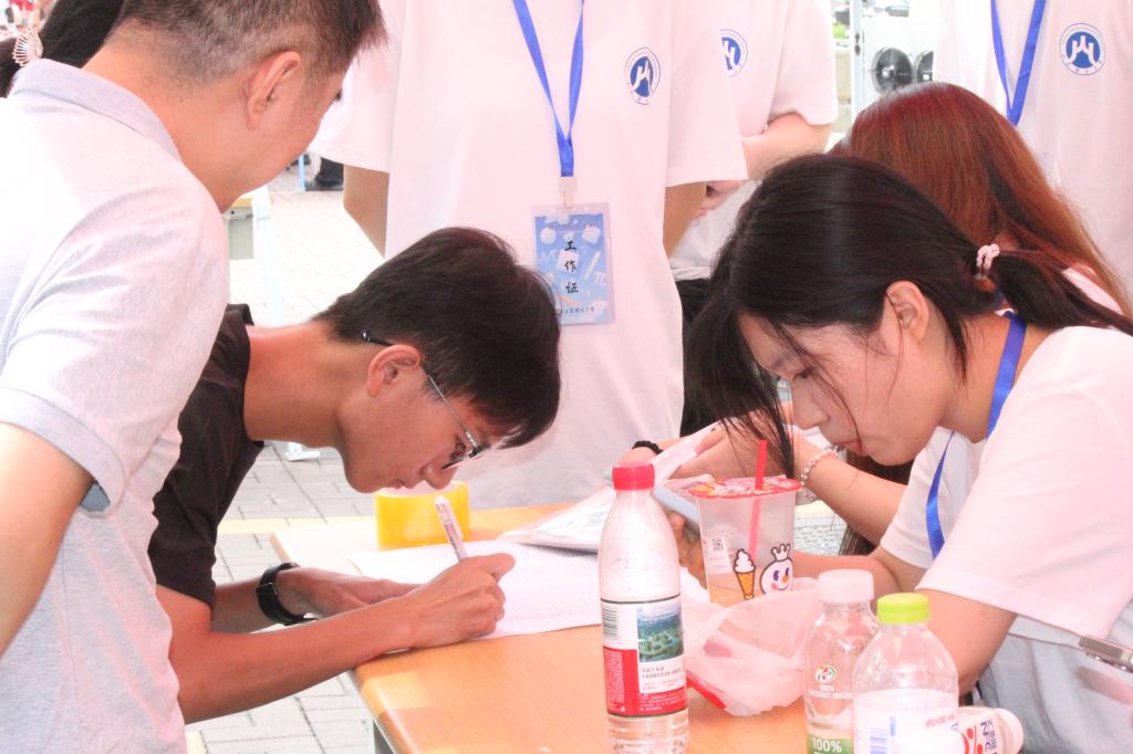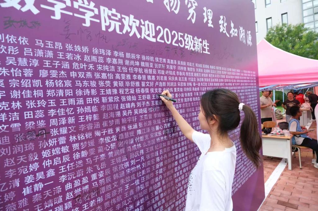 报到现场设学院简介、发展史及毕业生升学光荣榜展板,助新生快速了解学院。特色签名墙成“人气打卡点”,新生驻足留影,新闻宣传组记录下他们与大学的首张“实体合影”,照片汇总后拼成“爱心”,象征新生向心力与学院的深切期许。学院还推出“拍照发朋友圈抽奖”活动,新生分享喜悦的同时可获文创产品,让入学体验更难忘。