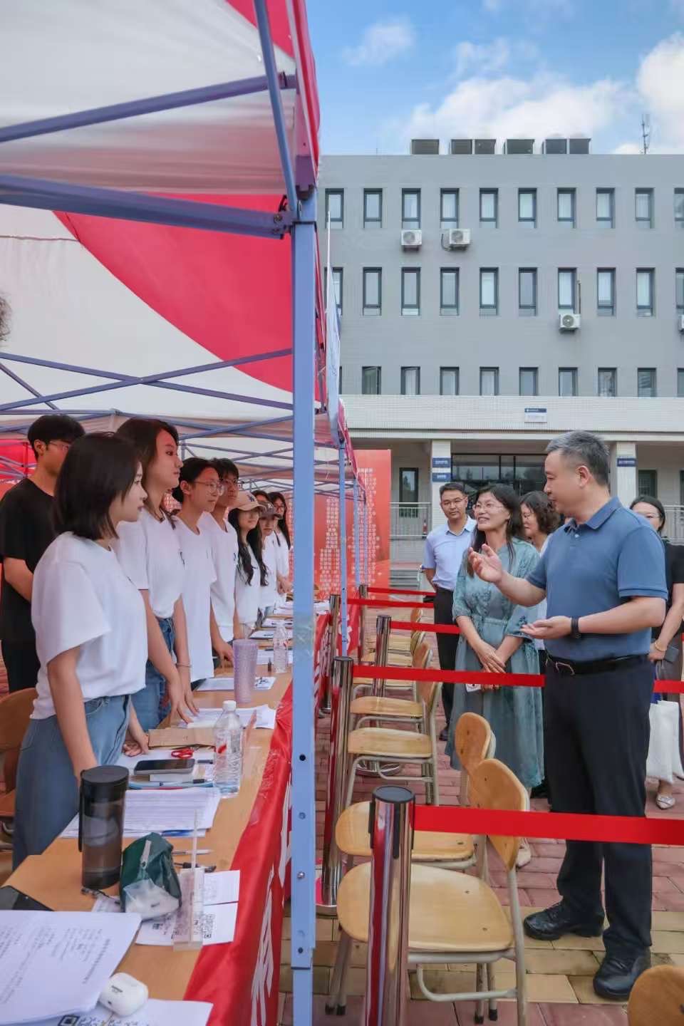 学院领导班子高度重视迎新工作,提前谋划部署。院长田金方,党委副书记孙栋梁、李云枝,副院长郭洪峰等多次到现场统筹调度,对流程、布置、物资、人员及应急预案等环节周密安排。李云枝动情表示:“每届新生都是学院的‘新宝贝’,这里不仅是求学之地,更是温暖的家,老师们会全程陪伴大家成长。”班子成员还围绕学业规划、课程设置等话题,为新生和家长答疑解惑,传递育人温度。