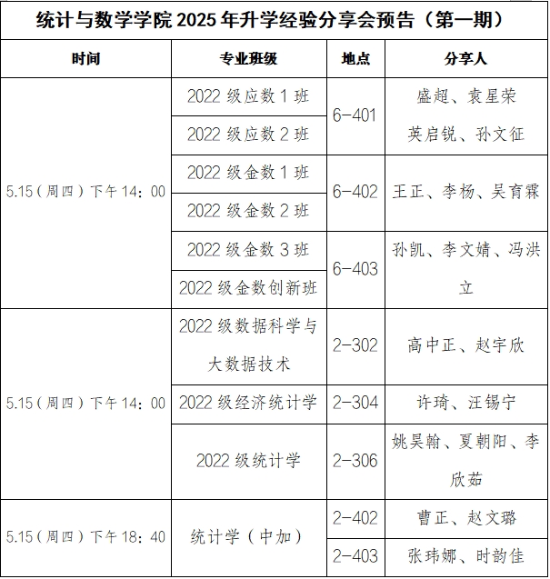 你是否正在为考研、保研或出境留学申请感到迷茫?面对未来升学路,如何规划才能脱颖而出?学院特别策划2025升学经验分享会,邀请各专业今年考研、保研或出境留学成功的学长学姐与你面对面畅谈备考策略、材料准备与心路历程!更有互动答疑、独家资料包等你解锁。现将有关事项预告如下: