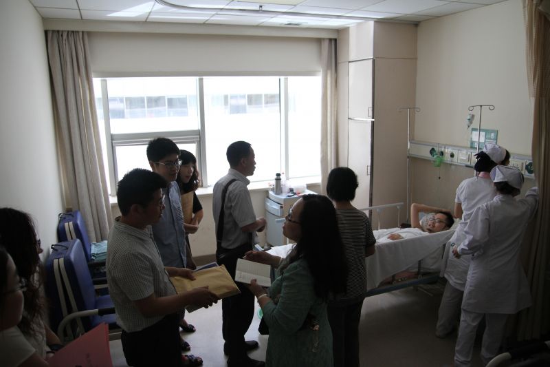 在医院探望期间,赵连幸向吕国昌同学及其亲属转达了学院其他领导及全体同学的亲切问候,询问吕国昌同学近期治疗康复情况,鼓励他安心养病,战胜病魔。随后,赵连幸把募捐的财物交予吕国昌家人,并由学生党员代表向吕国昌同学转达了成人论坛