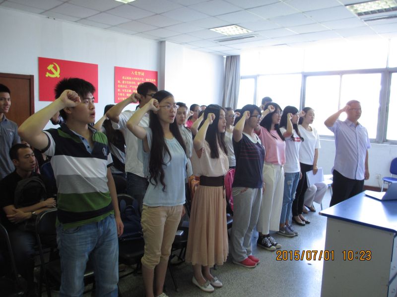 宣誓仪式在奏唱雄壮的《中华人民共和国国歌》声中后正式开始。学院党委秘书张亚萌同志带领全体党员宣誓。面对鲜红的党旗,25名党员庄重地说出自己对于党的坚定誓言,阵阵激昂的宣誓声抒发了对党忠诚的决心。