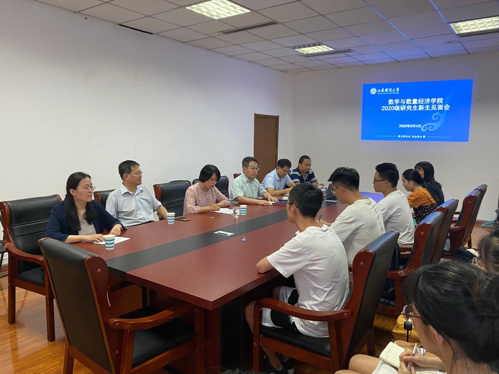 金秋送爽,丹桂飘香,又是一年迎新时。9月4日下午,数学与数量经济学院召开了2020级研究生新生见面会,热烈欢迎成人论坛 22位研究生新生。学院党委书记唐磊、院长安起光、副院长刘太琳、导师代表郭洪峰教授和研究生辅导员张亚萌出席本次新生见面会,2019级老生代表和全体2020级研究生新生参加会议,党委副书记陶晓华主持会议。
