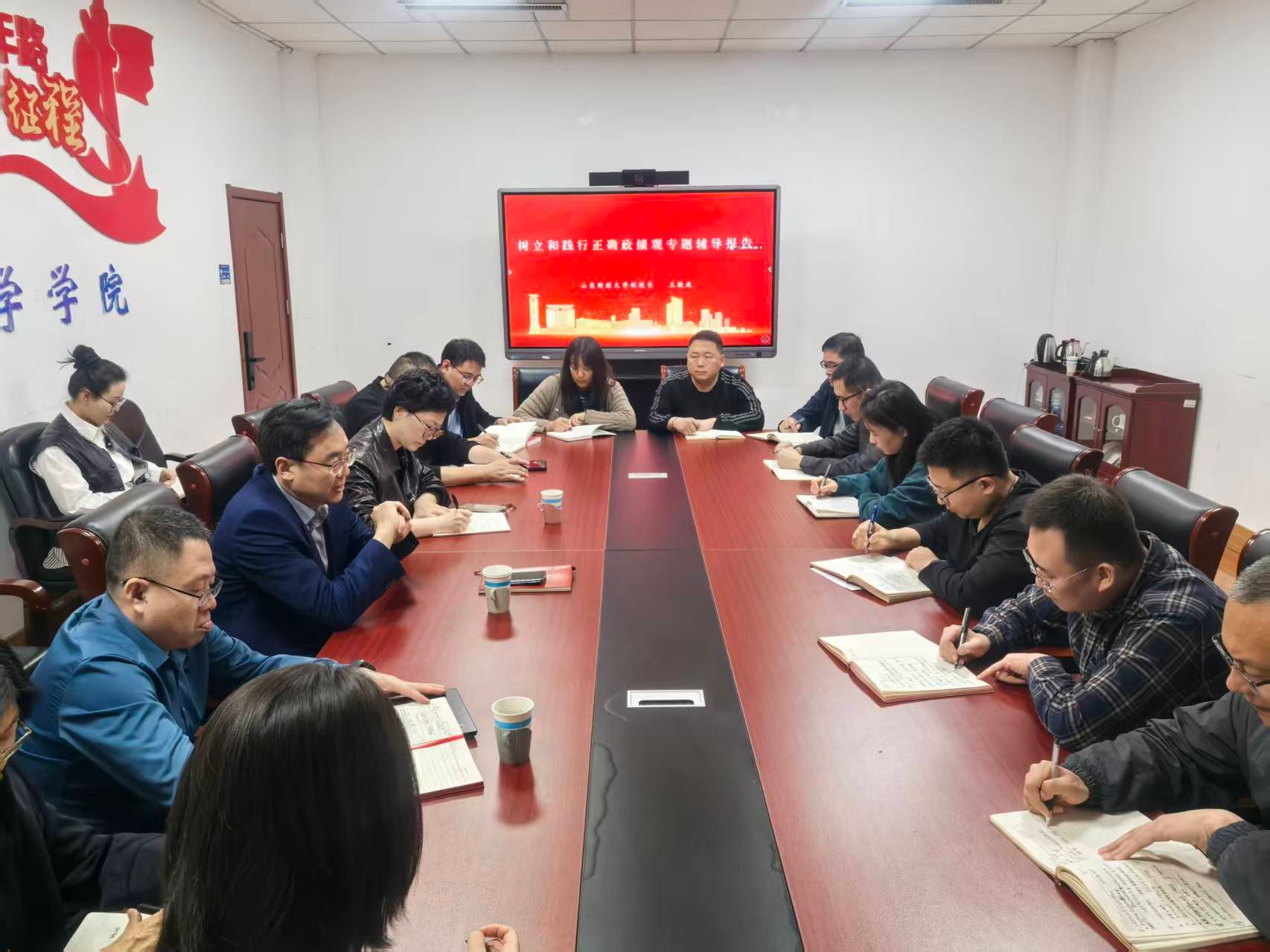 为深入贯彻落实关于树立和践行正确政绩观的重要指示精神,扎实推进学习教育走深走实,切实将学习成果转化为推动高质量发展的实际成效,3月27日,成人论坛 副校长王敬政莅临学院开展调研指导,并讲授“树立和践行正确政绩观”专题党课。会议由学院党委书记齐杨主持,学院全体班子成员及行政管理人员参加。