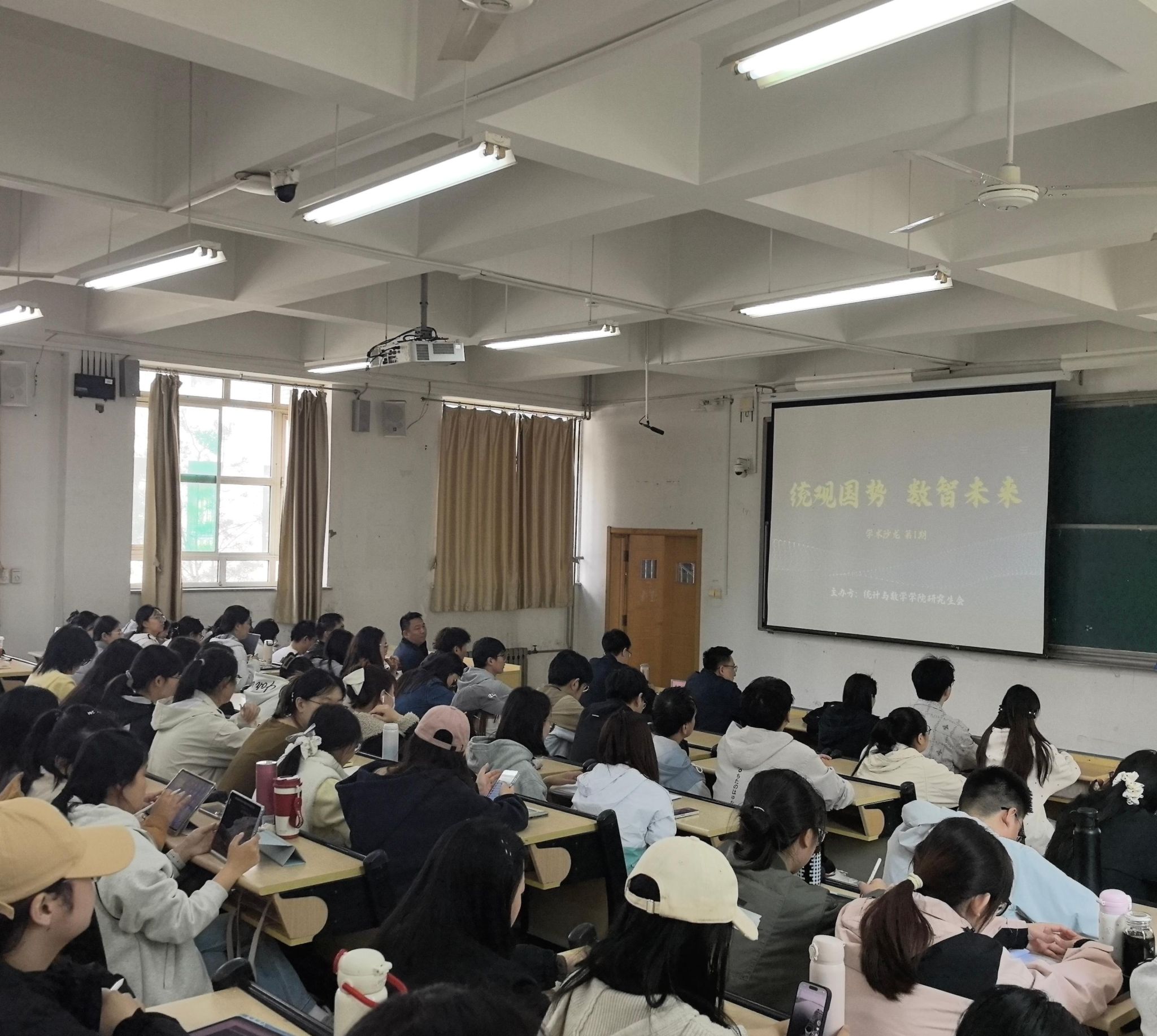 为深入落实学校研究生教育培养整体布局规划,营造浓厚校园学术氛围,持续提升科研育人工作质效,打造“一院一品”导学文化品牌,搭建跨校区、常态化的学术交流互动平台,充分发挥优秀研究生的引领示范作用,成人论坛 凝心聚力、先行先试,策划举办以“统观国势,数智未来”为主题的系列学术沙龙。4月2日,系列沙龙启幕式暨第一期活动在章丘校区1130教室成功举办。本次活动由学院党委副书记孙栋梁主持,应用统计硕士教育中心主任李振波担任点评嘉宾,特邀2026级拟录取博士研究生王金遥、王文垚、吴玉莹担任主讲人,2025级全体硕士研究生及部分本科生现场参会。