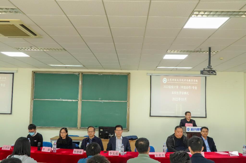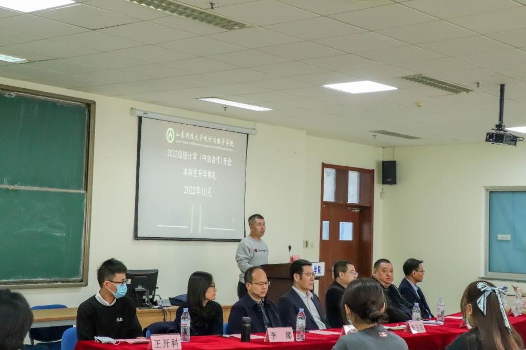 10月20日,成人论坛 于舜耕校区实验楼507举行2022级统计学(中加合作)专业开学典礼。成人论坛 党委书记李玉成,党委副书记、院长安起光,党委副书记杨德嵋、孙栋梁,副院长李娜、郭洪峰、王开科,教师代表戴洪帅,统计学(中加合作)专业辅导员杨雅琳出席。典礼由王开科副院长主持,22级所有新生参加。