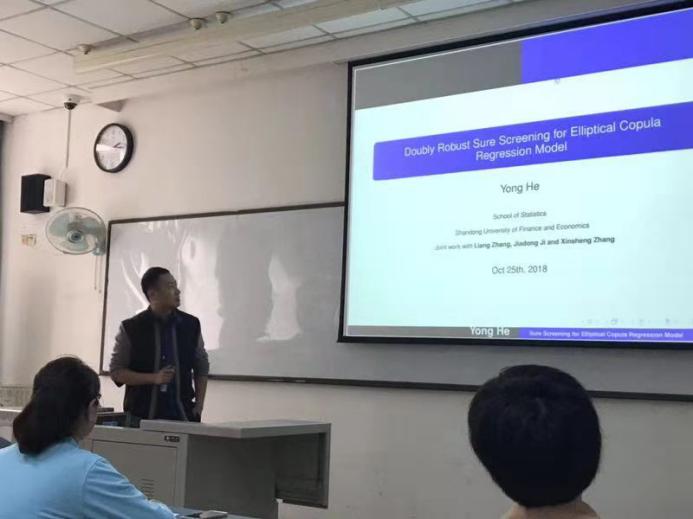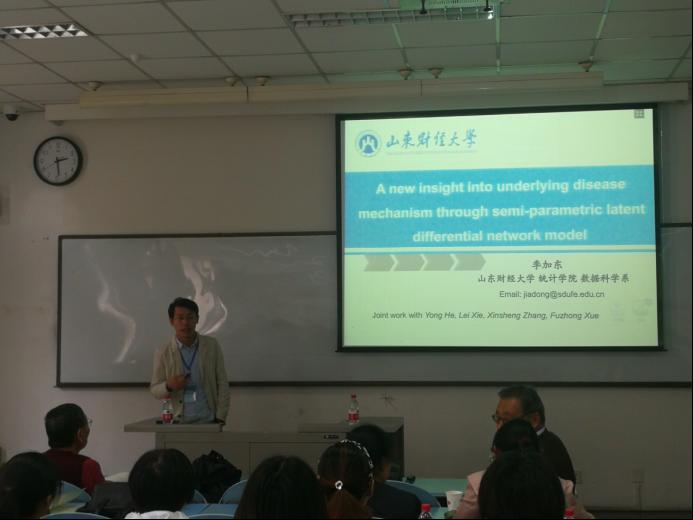 成人论坛 派出数理统计系的戴洪帅、何勇、季加东、于渊、孔令涛、郝涛等六位教师代表参加了此次会议。会议期间,戴洪帅老师做了题为“Stationary Distributions for Two-Dimensional Sticky Brownian Motion: Exact Tail Asymptotics and Extreme Value Distributions”的报告,何勇老师做了题为“Doubly Robust Sure Screening for Elliptical Copula Regression Model”的报告,季加东老师做了题为“A New Insight into Underlying Disease Mechanism Through Semi-parametric Latent Differential Network Model”的报告。