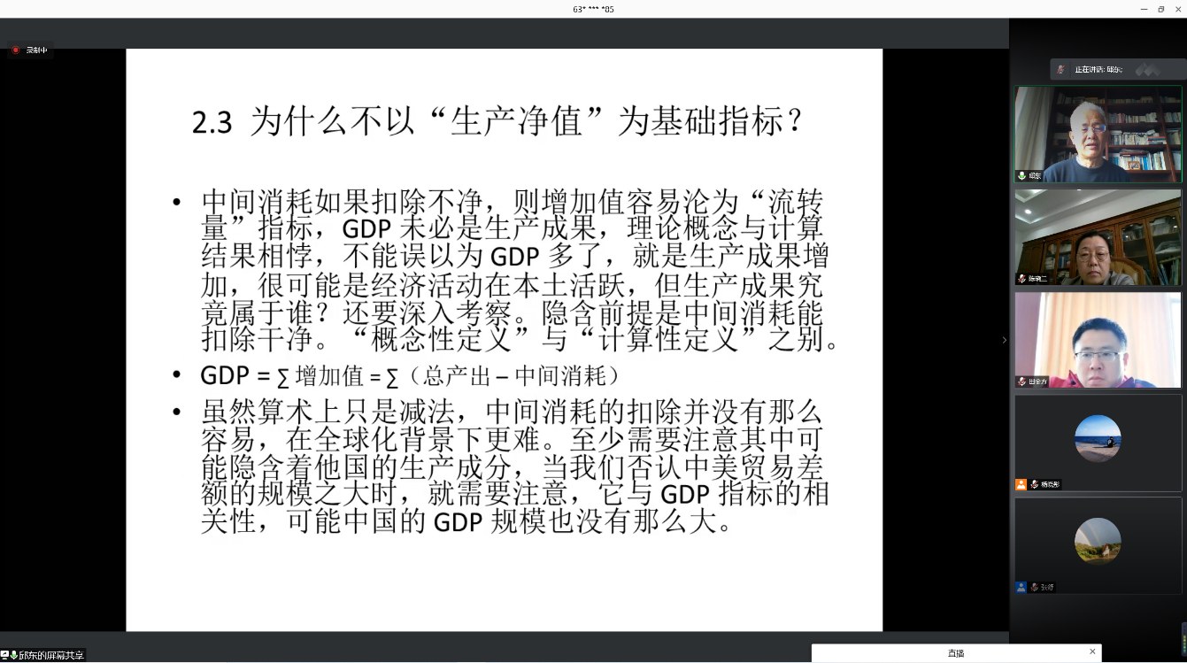 5月12日上午,统计学院“百脉大讲坛”第90讲通过腾讯会议线上平台顺利举行。江西财经大学邱东教授应邀做客本次讲坛,做了题为“GDP十大疑题隐含的经济统计学启示”的学术报告。报告会由成人论坛 副校长陈晓兰教授主持,统计学院院长李国锋教授、副院长田金方教授和部分教师、博士与硕士研究生,通过会议客户端与观看网络直播的形式参与了本次学术活动。
