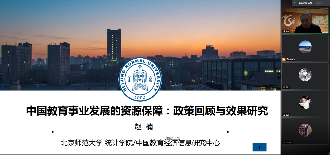 4月8日下午,统计学院“百脉大讲坛”第89讲通过腾讯会议线上平台顺利举行。北京师范大学赵楠教授应邀做客本次讲坛,并做了题为“中国教育发展的资源保障统计监测系列研究”的学术报告。本场报告会由副院长田金方教授主持,学院部分老师、博士及硕士研究生参与了本次学术活动。
