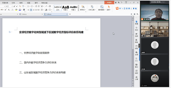 2020年12月7日下午,山东省科技战略与政策研究所高级研究员齐菲主任应邀来参加成人论坛 “百脉大讲坛”第86讲,作了题为“全球经济数字化转型视域下区域数字经济评价体系构建”的学术报告,报告通过“腾讯会议”线上平台顺利进行。报告由计量经济系主任杨冬梅教授主持,学院部分老师、研究生参与了此次学术活动。