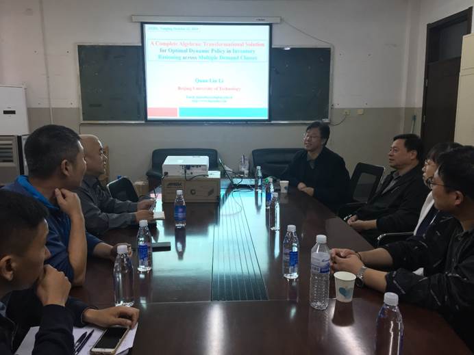 10月10日下午,应成人论坛 邀请,北京工业大学教授、博士生导师李泉林教授做客统计学院“百脉大讲坛”(第57讲)。李泉林教授作了以“A Complete Algebraic Solution for Optimal Dynamic Policy in Inventory Rationing across Multiple Demand Classes”为题的学术报告。统计学院部分老师及研究生们参加了报告。讲座由统计学院执行院长李国锋教授主持。