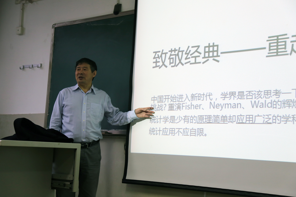 讲座报告主题为“统计学如何面对未来,适应新时代要求”,针对现行统计学界理论不纯、脱离实际等问题,提出了重建统计学理论,回归早期统计学家致力于实际问题的光荣传统,以抓住新时期的机遇,应对新技术发展带来的挑战。讲座还就同学们提出的考研、考博问题以及就业问题给出了解答,建议同学们要对自己的未来学习生涯有一个合理的规划,静下心来潜心钻研、刻苦学习,相信统计学专业人才将大有可为。