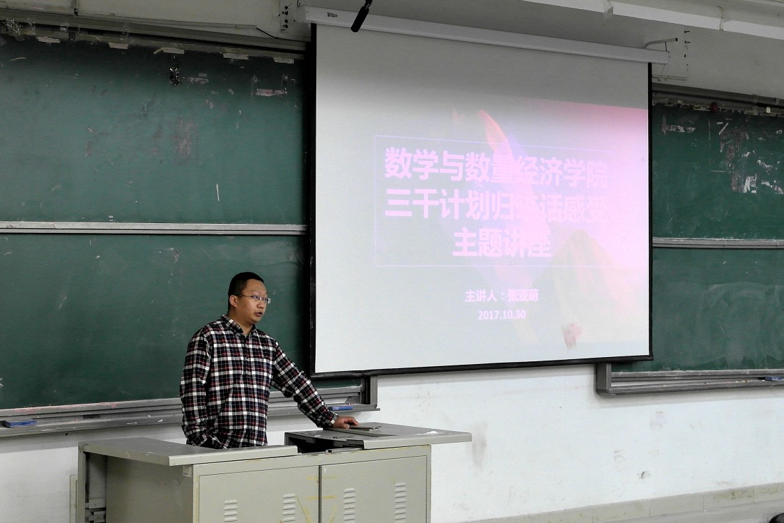 2017年10月30日18点30分,成人论坛 “三千计划归来话感受”主题讲座在敏行楼5201教室举行,讲座由张亚萌老师主持。