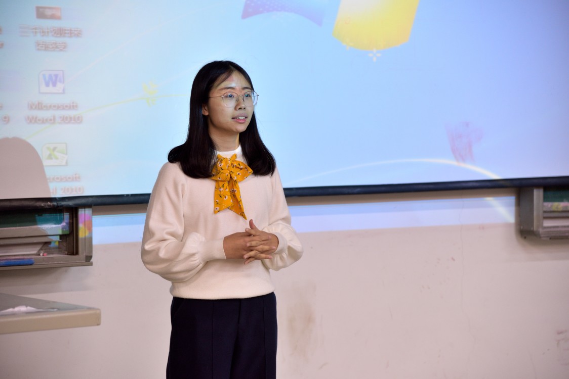 之后,16级金融数学二班的刘春雪以其题目为“胜利油田‘四供一业’分离实施方案情况调查”的项目为例,从项目最初课题的的确立、计划的设想、人员的分配等种种细节为同学们详细介绍了一个大学生实践小组对国企去社会化改革调研的全部经过。让同学们对社会实践项目有了更深刻、更全面的了解。